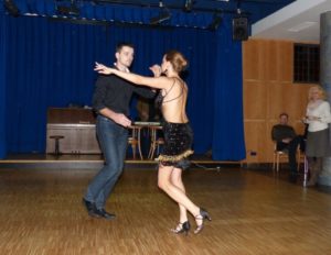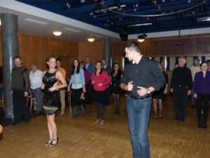 Stalo se už milou zvyklostí, že je první Čaj o páté ve znamení oslav Nového roku. Připíjíme si navzájem, aby byl pro všechny dobrý a úspěšný, a slavíme ho také tancem. Tentokrát mezi nás 12. ledna přišli Lucka se Žoltym, aby nám zatancovali salsu jako show a poté vyzvali všechny přihlížející, aby se ji pod jejich vedením také naučili. Parket se zaplnil skoro do posledního místa a my se poctivě učili nejen základní krok, ale i otočky. Ty se nám asi z hlav opět vytočí, ale základní krok zůstane a můžeme se v budoucnu snažit přidat i vlastní kreace. Bylo nám spolu dobře, máme už své publikum a přibývá další. Dělá nám to velkou radost a vždy dopředu pečlivě promýšlíme, čím naše navštěvníky překvapíme.