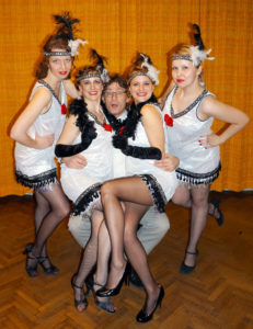Celé divadlo je v Boleradicích jiné, mnohem menší než ve Vídni. Teprve teď začal velký mumraj v dámské šatně. Tanečnice a herečky se tlačily u zrcadel, aby se nalíčíly, učesaly, náležitě připravily. Do toho zaznívaly pokyny inspicientky, kdo má nastoupit na jeviště. Dovedete si představit, jaký to byl chaos. Při generálce jsme vyladili poslední detaily techniky, světla, zvuk, oponu, bílou revuálku a napjatě čekali na půl osmou, kdy začínalo naše představení. Mezitím se divadlo hemžilo diváky, bylo vyprodáno. Po obou stranách každé řady byly přidány židle, diváci seděli i na balkoně, kde je stanoviště techniků.