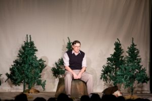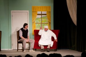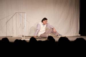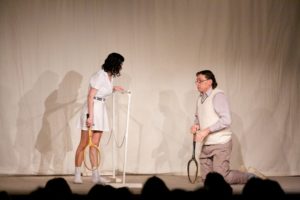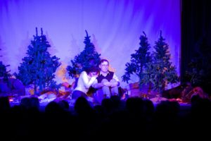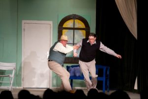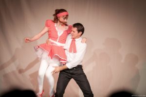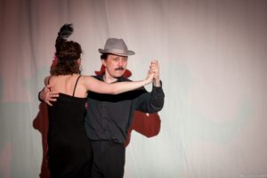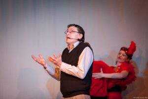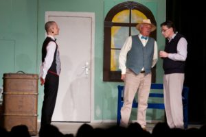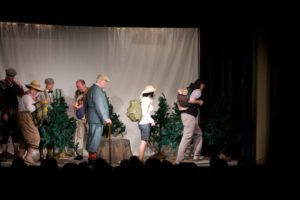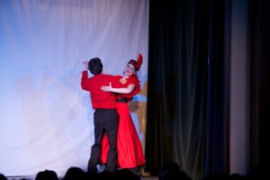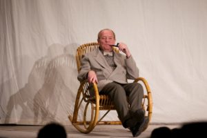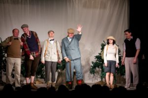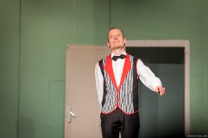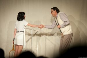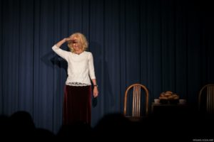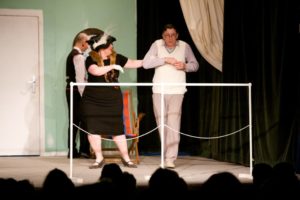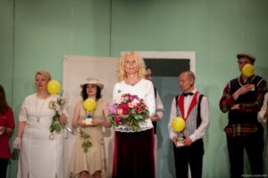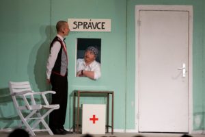 Je půl osmé, poslední zvonění a na jeviště vchází doktor Vlach a Vypravěč. Rozbíhá se poslední představení našeho Saturnina, které jsme v potu tváře nazkoušeli. Všichni dáváme ze sebe maximum, hrajeme pro potěšení nejen diváků, ale i sebe. Vše běží jako po drátkách. Nápověda nemá co napovídat, všichni jsou perfektní. Divákům se naše hra líbí, stejně tak tanečnice a tanečníci. Až téměř na konci představení přichází malé drama, tanečnice nám nezatáhly revuálku, aby mohl v klidu odejít dědeček a já, jako teta Kateřina si sednout za stůl a čekat na doktora Vlacha. Tak jsem seděla spolu s dědečkem na jevišti, majíc pocit, že tam v tuhle chvíli nepatřím, stejně jako dědeček v noční košili. On už tam být neměl, přemýšlel jak odejít a dostal nekontrolovatelný záchvat smíchu a smáli se i diváci. Věřte nevěřte, byla to prekérní situace, ale nakonec se vše vyřešilo a my mohli pokračovat s doktorem Vlachem v závěrečné scéně.