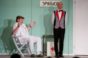 Na konci představení nás čekal nekonečně dlouhý potlesk, všichni kolegové a kolegyně odvedli skutečně perfektní výkon hodný profesionálů. Aplaus diváků byl důkazem. Anička a Viktor Vaďurovi měli šťastnou ruku při výběru herců a my jim děkujeme za důvěru, kterou v nás vložili. A doufám, že jsme je nezklamali. Divadlo v Boleradicích má velmi příjemnou atmosféru, vděčné diváky a milé kolegy z divadelního spolku. Už se těšíme na další, listopadové hostování. A vy, naši vídeňští diváci, se těšte také, na podzim uvedeme komedii Dva na kanapi, která je plná vtipných scén a zápletek.