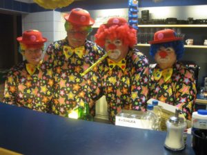 Masopust už tradičně slavíme ve Vlastenecké omladině maškarním Čajem o páté. Ten měl tentokrát motto: CIRKUS. A opravdu – už při vstupu do velké klubovny české školy zůstali návštěvníci v úžasu stát. Od stropu visely pruhy barevných látek, ověšených pestrobarevnými balónky a vzbuzující pocit, že jsme se ocitli v pravém cirkusovém šapitó. Ze všech koutů se na nás usmívali klauni, které vykouzlily Aleniny šikovné ruce. Také stoly zdobily usměvavé postavičky s pusou od ucha k uchu a my jsme ten úsměv mimoděk opakovali po celý večer. A jak by ne! Přicházející ohromovali svými nápady a maskami, dokonce i jeden pejsek se nám snažil vsugerovat, že z něho jednou vyroste pes baskervillský
