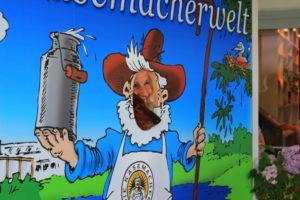Každoroční výlety do neznáma vymýšlí, plánuje a organizuje pro divadelníky z Vlastenecké omladiny Alena Tobrmanová za podpory svého Luboše. Pase se pak na našem údivu a ohromení a my se po vydařeném výletě spokojeně ujišťujeme, že bychom do takových míst jinak nikdy nezavítali! A co jsme zažili v sobotu 28. května? Ráno na nás u školy čekal přímo luxusní autobus. My, milovníci filmu „Dědictví“, bychom to okomentovali slovy: „Už je tady, poschoďák!“ Tak pěkným autobusem, navíc s velmi obratným řidičem Borisem, se Omladina už dlouho nesvezla. Po dvou hodinách jízdy severním směrem jsme se už začínali dohadovat, kam jedeme, jestli k tamtomu jezeru nebo k tomu krásnému hradu před námi, ale nikdo se netrefil. Zastavili jsme totiž před sýrárnou „Käsemacherwelt“ v půvabném městečku Heidenreichstein, kde nás čekala prohlídka i s degustací.