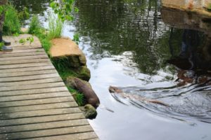 Po obědě většina z nás využila možnost projít se kolem nádherného jezírka. Počasí nám přálo, tak někteří z nás chytli i trochu bronzu. Po odvolání poplachu, že se ztratil pejsek Fridolín, jsme mohli vyrazit ještě o kousek dál, opět do neznámého cíle. Cesta tentokrát netrvala dlouho, po chvilce jsme zastavili v malebném Schremsu, kde pro nás Alena zařídila prohlídku v místním Centru podvodního světa. Moc jsme nevěděli, co si pod tím představit. Uvítaly nás prostory s houpací sítí, modely, živými expozicemi i hračkami a obřími akvárii. Pod mikroskopem jsme si mohli prohlédnout různé vodní potvůrky, i když při promítání v mikrokině, doprovázeném odborným výkladem, už někteří potřebovali sem tam probudit. Ovšem druhá, venkovní část prohlídky, nás zase osvěžila, protože začalo trochu pršet.