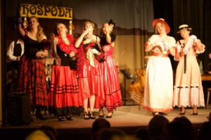 HAŠLEŘENÍ aneb V Praze bejvalo blaze jsme tam hráli 6. října 2019 naposledy. V roce 2018 jsme tento autorský muzikál z prostředí staré Prahy nastudovali pro Vídeň k 100. výročí vzniku Československa. Derniéra pak byla uctěním památky 140. výročí narození velkého skladatele, herce a písničkáře, vlastence Karla Hašlera. 6. října byla neděle a při odpoledním představení obsazují první řadu chovanci z domova pro postižené v nedalekých Kloboukách. I oni už nás znají a my víme, že přímo milují představení s písničkami. Já jsem tentokráte prožívala Hašleření na balkóně u techniků, a tak jsem měla dobrý přehled o všem, co se dělo jak na jevišti, tak i v hledišti. Cítila jsem, jak proudí energie z jeviště do publika a naopak, jak diváci souzní s herci, slyšela jsem, jak se smějí každé pointě a jak radostně zpívají refrény, které znají.