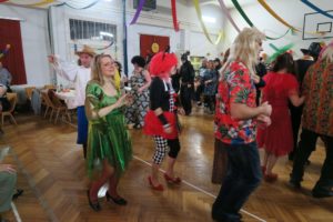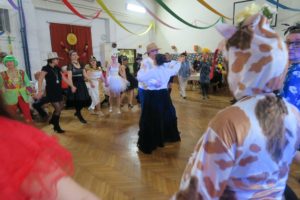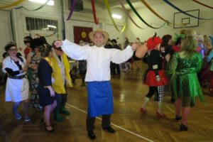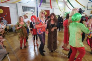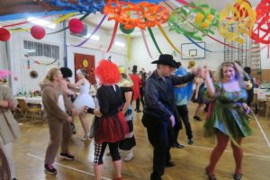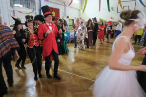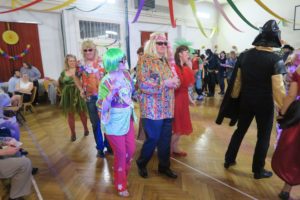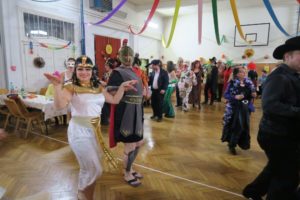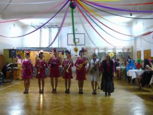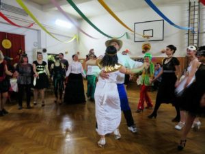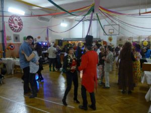 Tradiční promenáda se protáhla, protože komise dlouho zvažovala, které z těch originálních a nápaditých masek vyzdvihnout. Celý ples pak ozdobil výstup Jany a Dany s tanečnicemi z muzikálu SUGAR. Bylo to přesně takové, jak jsme si představovali a přáli – sokolovna, jinak zvyklá pouze na cvičence, se stala ten večer rozpustilou, hýřící barvami a bujarou radostí ze života. Samozřejmě bylo v pozadí zapotřebí velmi mnoho pilných rukou, které sokolovnu nazdobily a v průběhu plesu pečovaly o tělesné blaho tančících.