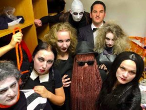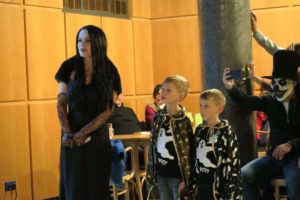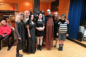 O zábavu se postarala rodinka Addamsových. Nejdřív nám zazpívali a pak si připravili pro nás dva úkoly, přičemž při jednom úkolu byl dokonce náš divadelní pan Hašler mumifikován pomocí toaletního papíru! Vybírat tu nejlepší masku byla pěkná fuška, neboť bylo z čeho vybírat, a tak nakonec byli odměněni skoro všichni nějakou malou sladkostí, od malé čarodějky Fanynky až po našeho dvorního harmonikáře Pala. Bavili jsme se skvěle a nikomu se ani nechtělo domů. Ale s vyhlídkou, že již za měsíc máme opět možnost se sejít, jsme se nakonec smířili, že v nejlepším se má přestat.