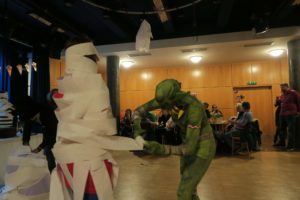 Kdo se odvážil vstoupit v neděli 10. listopadu do velké klubovny české školy, ten byl odměněn jedinečnou atmosférou na listopadovém Čaji o páté v duchu Halloweenu, kdy se všichni zombíci, strašidla, duchové a čarodějové mohou u nás jednou v roce opravdu cítit jako doma! Ano, Halloween je původem anglosaský svátek, takže se můžete ptát, proč ho slavíme u nás v Omladině! Důvod je prostý – strašidelné kostýmy v kulisách podzimního sychravého počasí a blikající světýlka vydlabaných dýní působí přímo tajemně a magicky. Pokud se k oranžově červenému svátku přidá humor a nadsázka, může být oslava ve stylu Halloweenu jedna z nejlákavějších.