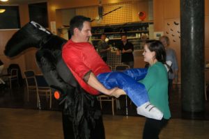 Atrakce, která u halloweenského svátku nesmí nikdy chybět, je rozhodně dýně a jejích tucet tváří! To si vzala naše osvědčená dekoratérka a organizátorka všech pamlsků Alena za své, a nejenže krásně vyzdobila klubovnu dýňovými vázičkami a balónky, ale ještě pro všechna hladová strašidla uvařila skvělou dýňovou polévku. Naši návštěvu tentokrát osladila firma Eis am Stiel, která nám dodala krásné a chutné větrníky.