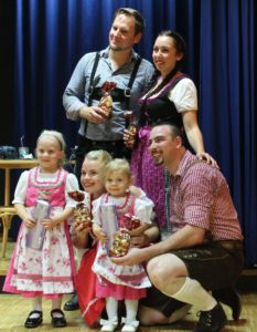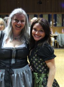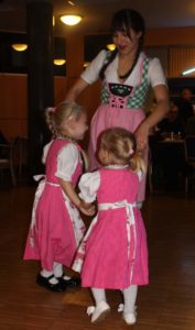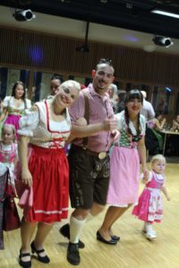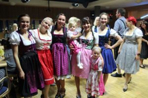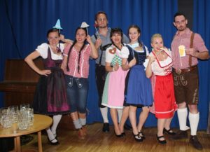 V neděli 13. října zahájila VOmladina se svými přáteli a hosty ve velké klubovně české školy Komenského novou divadelní sezónu. A k VOmladině už neodvratně patří i pořádání Čajů o páté, tentokráte v duchu Oktoberfest. Sice jsme nenaráželi podle mnichovského vzoru sud piva, ale náš labužnický tým Alena a Luboš připravil v bufetu kromě obvyklého pohoštění další lahůdky – bílé buřtíky se sladkou hořčicí a preclíky, dva druhy piva, červený i bílý burčák – že by nám i v Bavorsku záviděli. A ta pestrobarevnost! Většina slečen a dam byla vystrojena do krásných dirndlů, které neutajily bujné vnady a páni zase ukazovali svoje ochlupená lýtka v kožených kalhotách s laclem – radost pohledět!